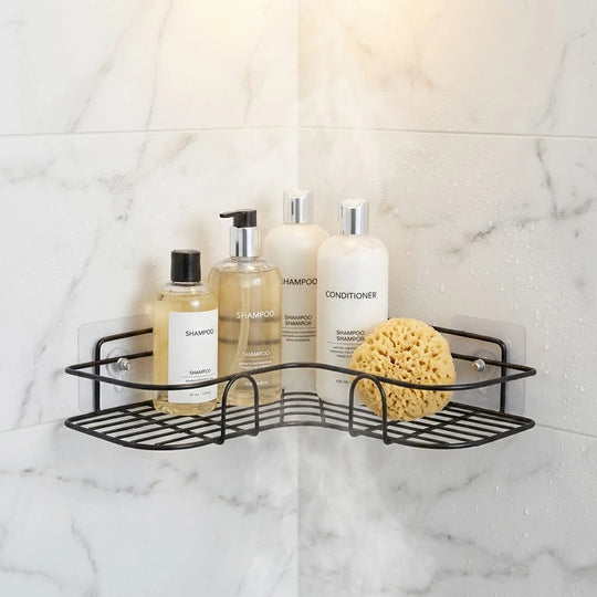 Stop letting your shampoo bottles pile up on the floor or the rim of the tub where they always seem to slip and fall. Use these to mount a sturdy corner rack and keep your soaps and sponges at eye level where they actually belong.